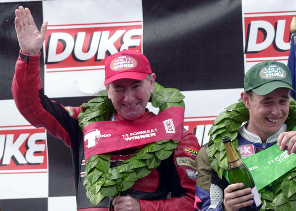 Joey Dunlop (represented by Jim Dunlop) Needs no introduction – the 26 time TT Race winner, including ‘hat-tricks’ in 1985, 1988 and 2000. Voted the fifth greatest motorcycling icon ever by Motorcycle News in 2005 also won 24 Ulster Grand Prix races and five consecutive World Championship titles from 1982 to 1986. Awarded the MBE in 1986 for services to Sport and the OBE in 1996 for his work with children in Romanian orphanages.