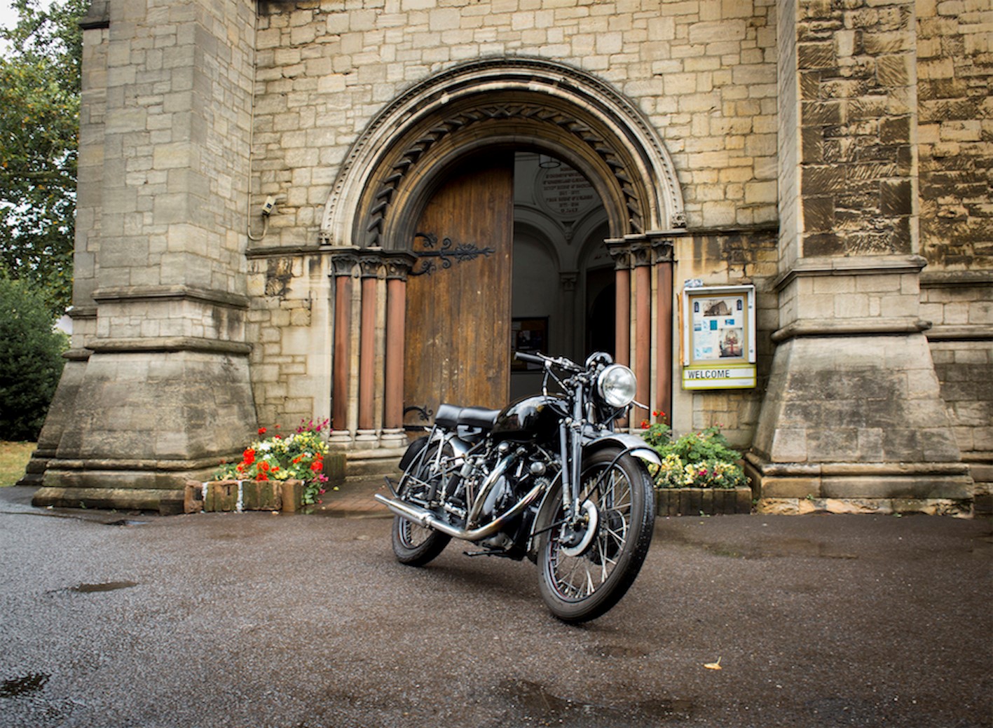 Father Robert Edward Hampson was an avid motorbike collector and rider in his spare time, so close friends and relatives were pleased to have his bikes at the church once more before going to sale with H&H Classics on November 9th.