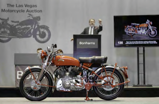 *Image at top – Vincent Red “White Shadow” smashes world record for the model at Bonhams’ highest grossing Las Vegas sale.