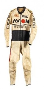 Leathers belonging to Mike Hailwood, one of the sport’s biggest comeback legends, famed for his record speed win at the Formula 1 TT in 1978.